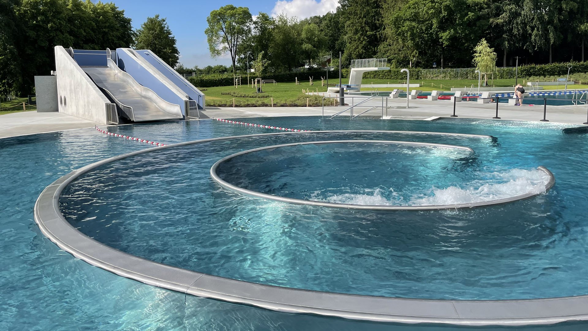 Zur Steigerung der Attraktivität des Freibades wurden die sanierungsbedürftigen Bäderanlagen in Stahlbetonsystembauweise mit Folienabdichtung aus dem Jahre 1966 zurückgebaut und in neuer Anordnung in Edelstahloptik erneuert. Das Kleinkinderbecken bleibt unverändert erhalten. Die Gebäude auf dem Grundstück wurden zum Teil erweitert und die Aufbereitungsanlagen für die Becken neu errichtet. In der neuen, unterirdischen Pumpenstube finden die Rohwasserspeicher sowie die Pumpentechnik für die Umwälzanlage und Attraktionen ihren Platz. Die Filtertechnik ist in der bestehenden Filterhalle untergebracht. Die Barrierefreiheit ist auf dem gesamten Gelände gewährleistet.