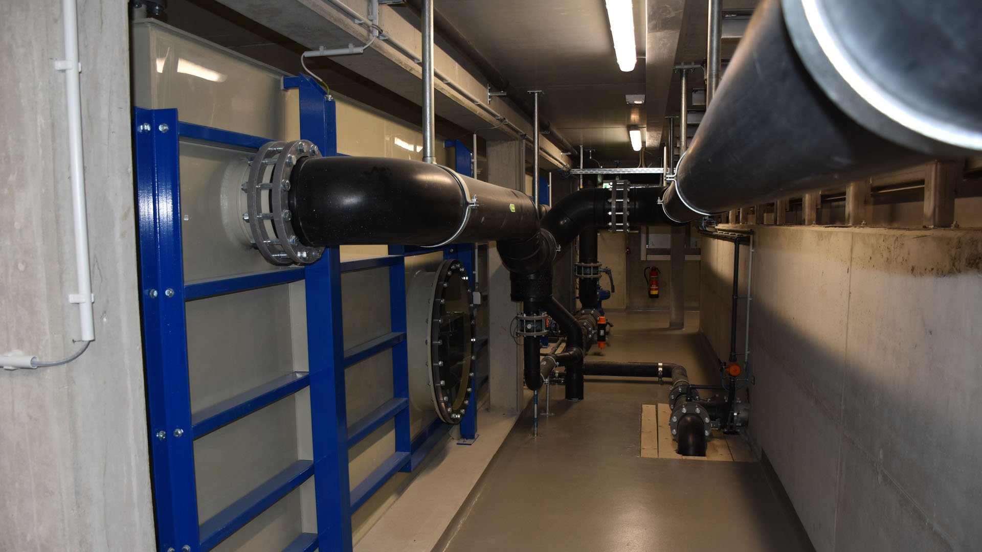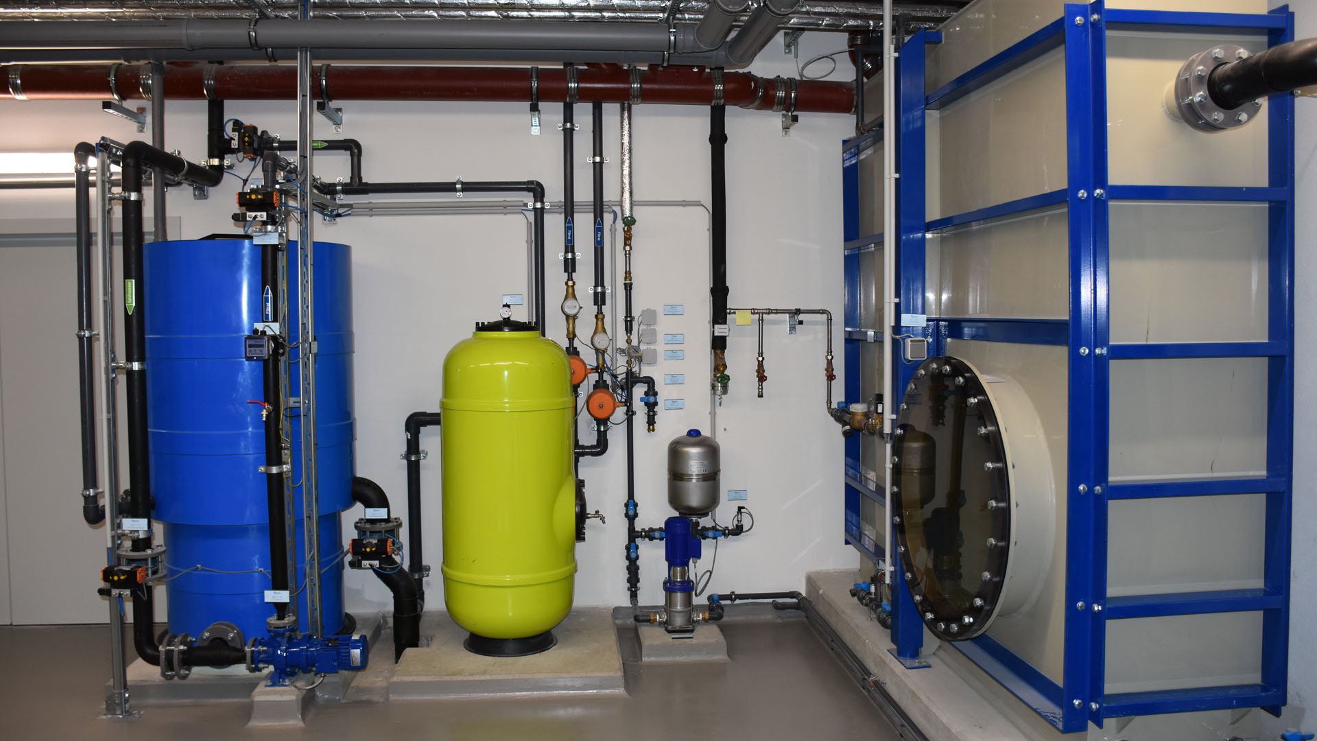 Eine Sanierung / Modernisierung des inzwischen in die Jahre gekommenen Gebäudes mit seinen baulichen Mängeln war wirtschaftlich nicht weiter zu vertreten. Der Neubau am Altstandort Wiesenstraße 8 umfasst ein Sport-schwimmbecken (4 Bahnen a 25 m) mit einem Hubboden mit den erforderlichen Funktions- und Sozialbereichen.